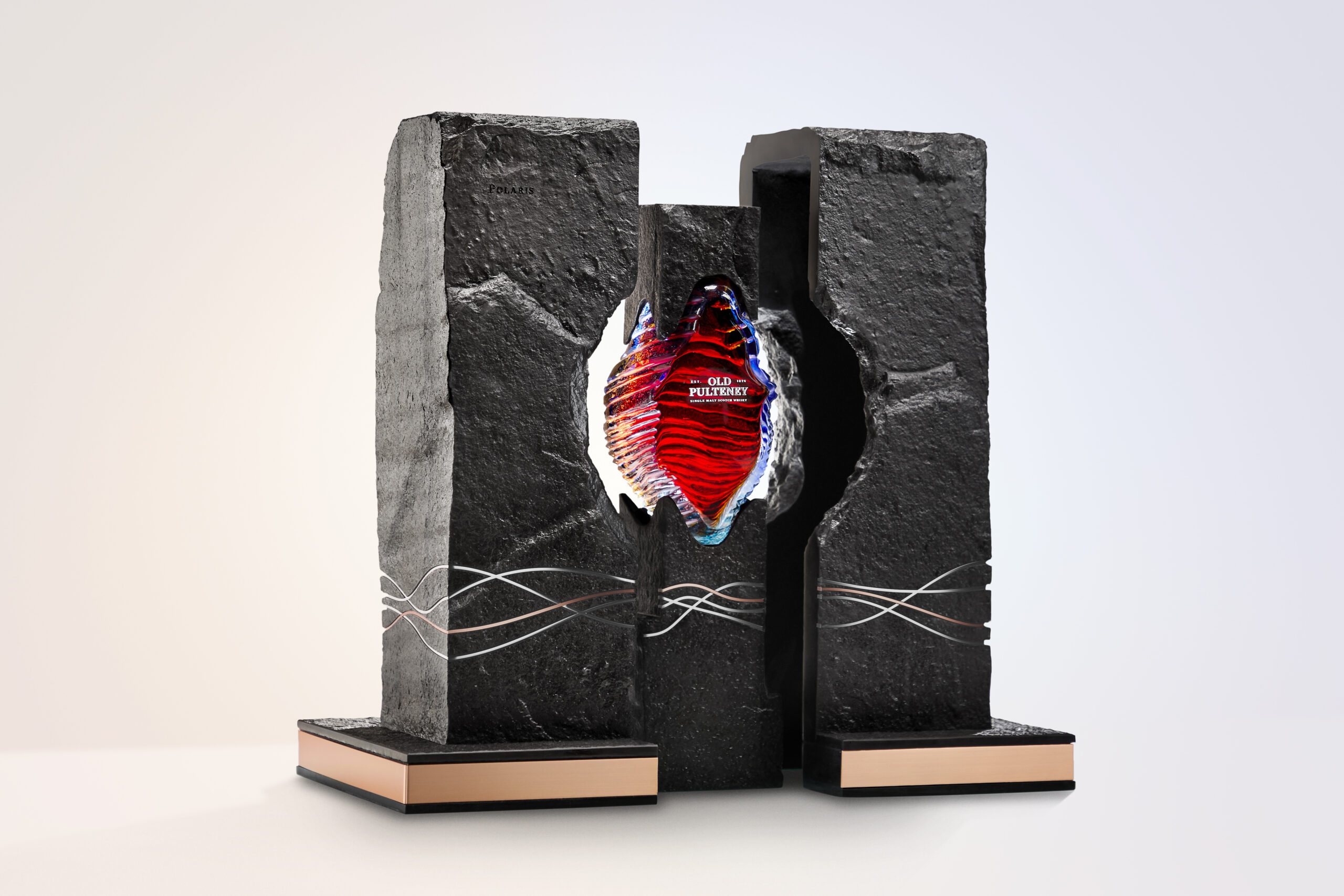 The oldest ever bottling from the distillery in the far north Highland town of Wick. This luxurious single malt began its journey in American oak ex-bourbon casks for four decades, before a lengthy seven-year secondary maturation in a single first-fill Spanish oak ex-sherry butt. Polaris is presented in a hand-blown blue glass bottle, created by Highland studio Glasstorm, evoking the waves of the North Sea. The outer casket is made using local Caithness slate. Copper from the stills is also woven into the design.
